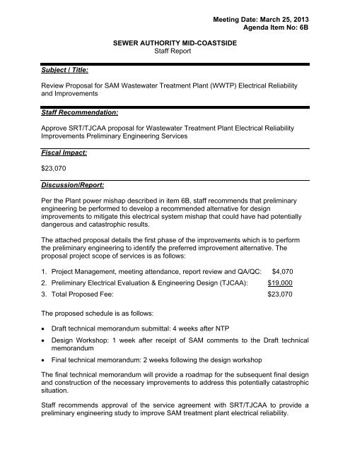 Review Proposal For Sam Wwtp Plant Electrical Reliability And